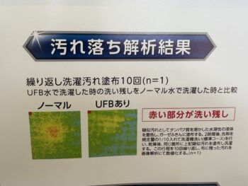 ⇩これが実際のUFB水とノーマル水で洗濯した時の汚れ落ちの比較です❣️